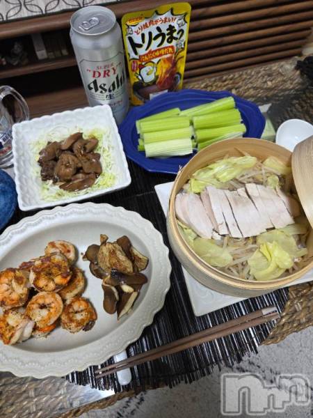 今月の〆は蒸し鶏と鶏レバー煮とガーリックシュリンプとか🦐